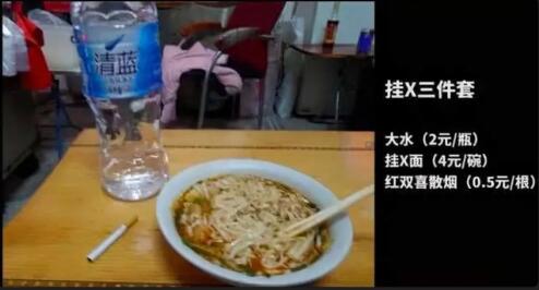 三和的⽹吧⼀⼩时只要1.5元,吃挂逼⾯五元⼀碗,喝挂逼⽔2元⼀瓶。在三和,可能还卖有散烟,这也给那些⽣活拮据的三和⼤神,提供了解烟瘾的可能。