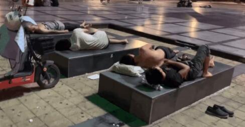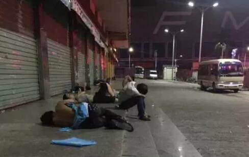 海新⼤酒店位于海新⼈⼒市场的⼀处台阶,这⾥每晚都挤满了三和⼤神们。睡在这⾥,那意味着他们甚⾄连15元⼀晚的床位和8元通宵的⽹吧费⽤都负担不起,是名副其实的三和⼤神。