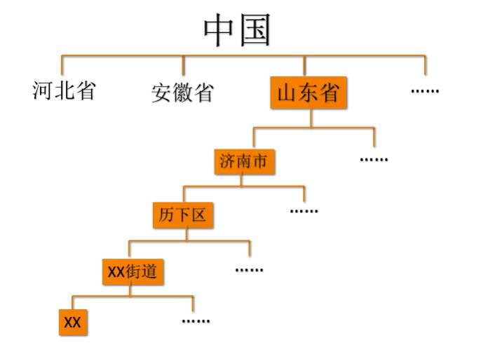 把国家分成34的省和行政区,然后每一个行政区后面又分成若干个县市,每一个市又划分若干个区,每个区有划分小区,村庄,每个村庄又有若干个家庭,然后找到你所在的那个家庭,最后定位到你。